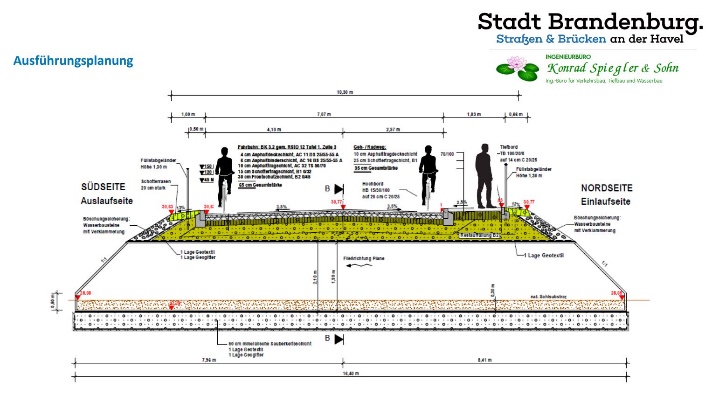 Mit der Entscheidung zum Ersatz der Brücke durch zwei nebeneinanderliegende Durchlässe mit einer geschlossenen Fahrbahndecke wird eine jahrelange Nutzungseinschränkung und beträchtliche Beeinträchtigung vermieden. Zum Vorteil der Brandenburgerinnen und Brandenburger. Weitere Vorteile und Verbesserungen gegenüber dem vorherigen Zustand sind: